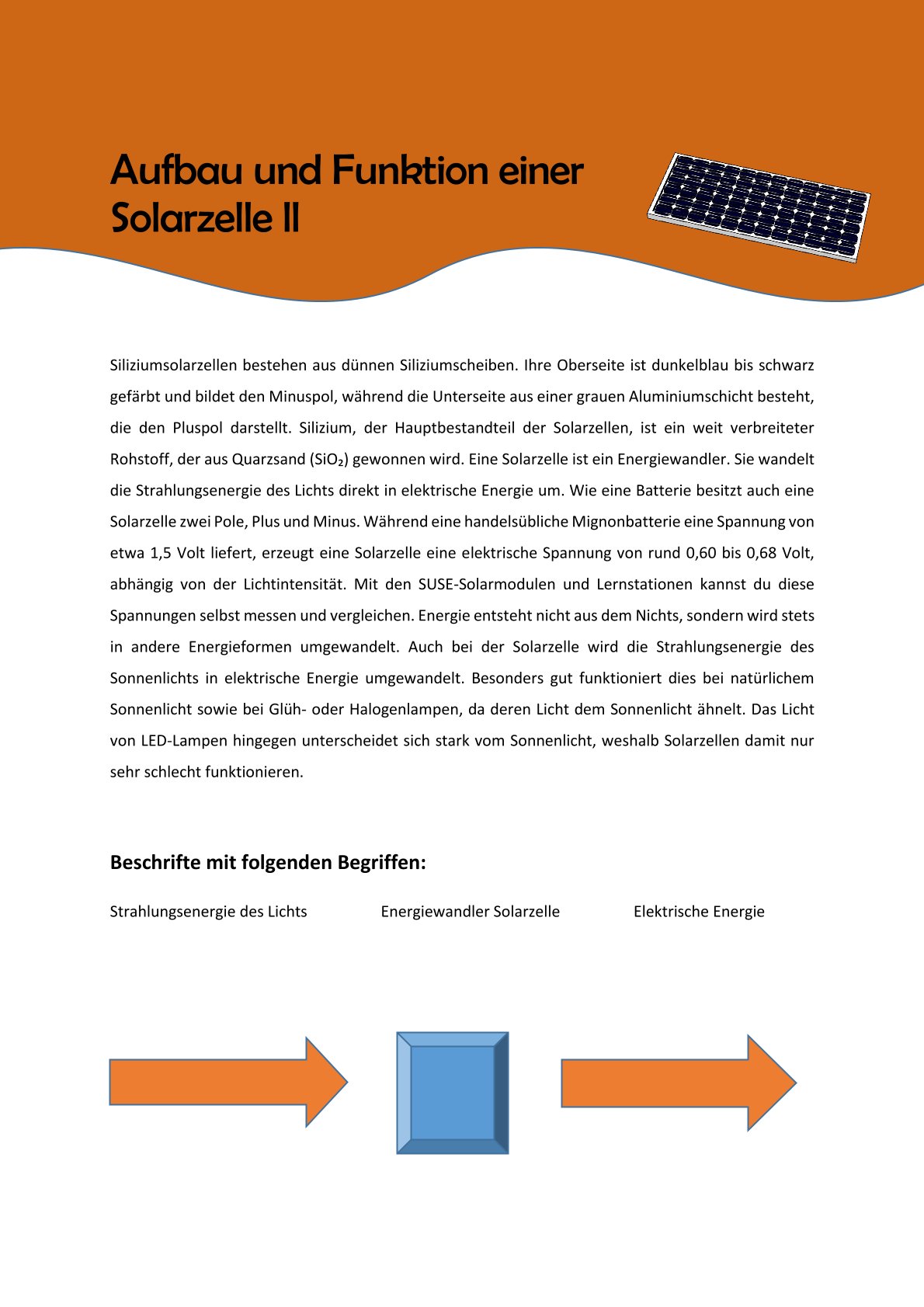 Das Prinzip der Stationsarbeit besteht darin, Schüler:innen die moderne Technik der Solarenergie auf experimentelle Weise näherzubringen. Sundidactics stellt hierfür passende Arbeitsblätter sowie strukturierte Schüler:inneninputs zur Verfügung, die Sie auch in diesem Abschnitt für das eigenständige Unterrichten finden können. Diese Materialien ermöglichen es den Lernenden, sich aktiv und selbstständig mit den Grundlagen und Anwendungsmöglichkeiten der Solarenergie auseinanderzusetze