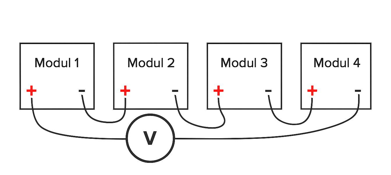 Solarzellen lassen sich in beliebiger Anzahl in Reihe schalten, um höhere Spannungen zu erreichen! In der Photovoltaik- Technik werden in den großen Solarmodulen meist 36…72 Solarzellen in Reihe geschaltet.