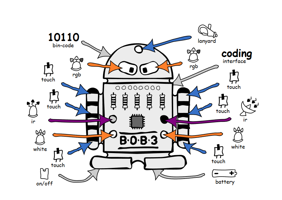 Der BOB3 ist ein kleiner, programmierbarer Roboter, der Kindern und Jugendlichen das Programmieren auf spielerische Weise näherbringt. Er kann erkennen, ob seine Arme berührt werden und sogar, an welcher Stelle oben, in der Mitte oder unten dies geschieht. Außerdem ist er in der Lage, andere BOB3-Roboter als Freunde zu erkennen, seine weißen Scheinwerfer einzuschalten, seine Augen in verschiedenen Farben blinken zu lassen und zwischen nahen und fernen Objekten zu unterscheiden. Der Roboter kann frei programmiert werden, eigene binäre Codes erhalten oder mit einer Knopfzelle und Lanyard als blinkendes Gadget um den Hals getragen werden.