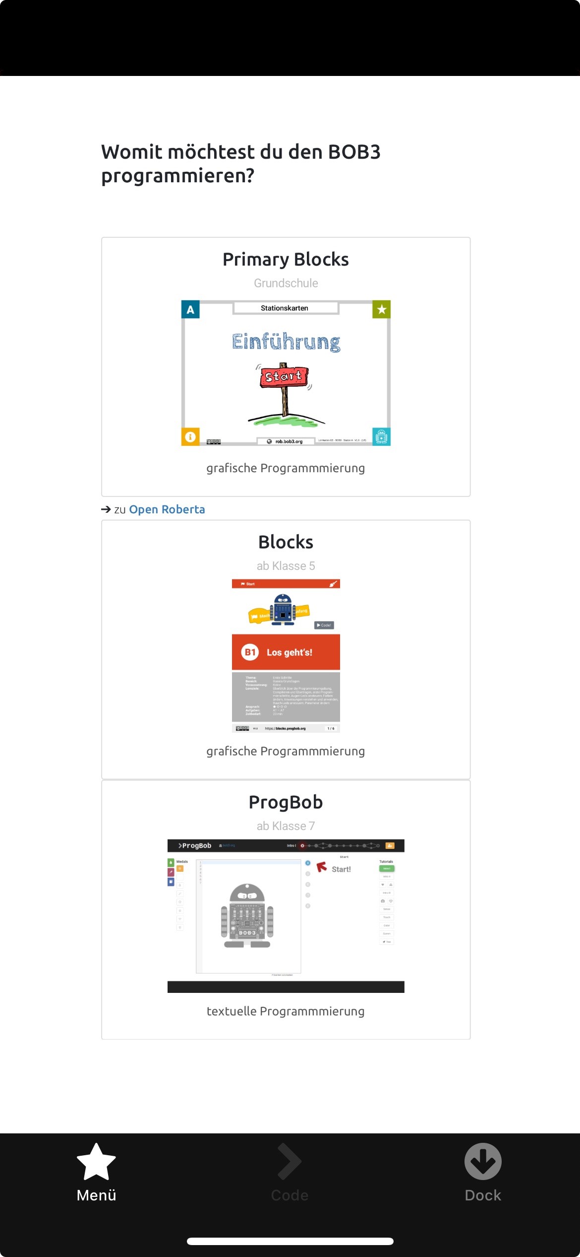 sein, da er sich im Gegensatz zu den anderen nicht bewegen kann. Dennoch bietet der BOB 3 eine Vielzahl an Möglichkeiten ihn für Schüler*innen interessant und abwechslungsreich zu nutzen.