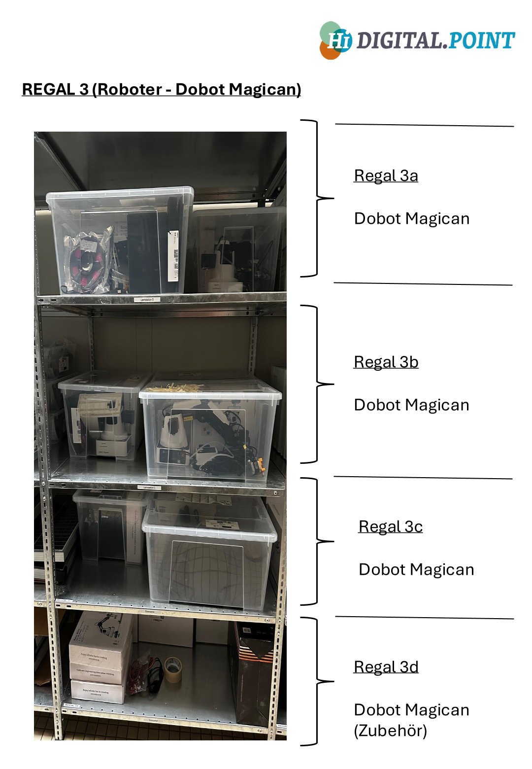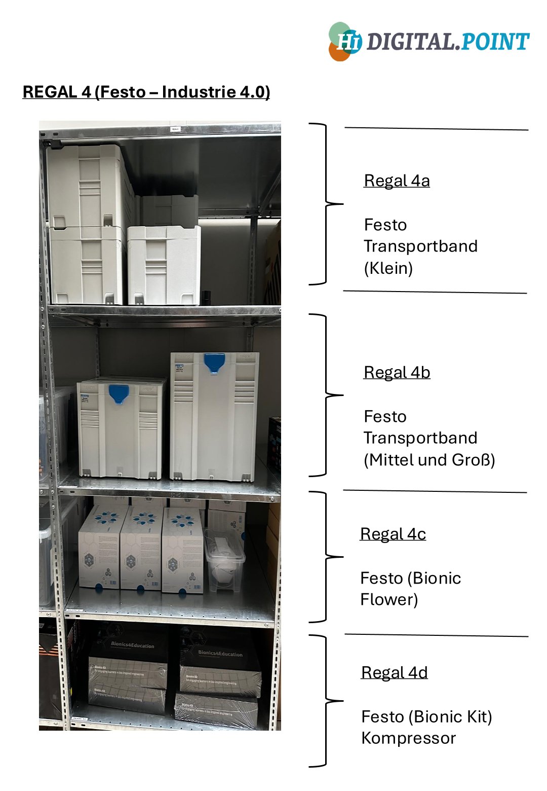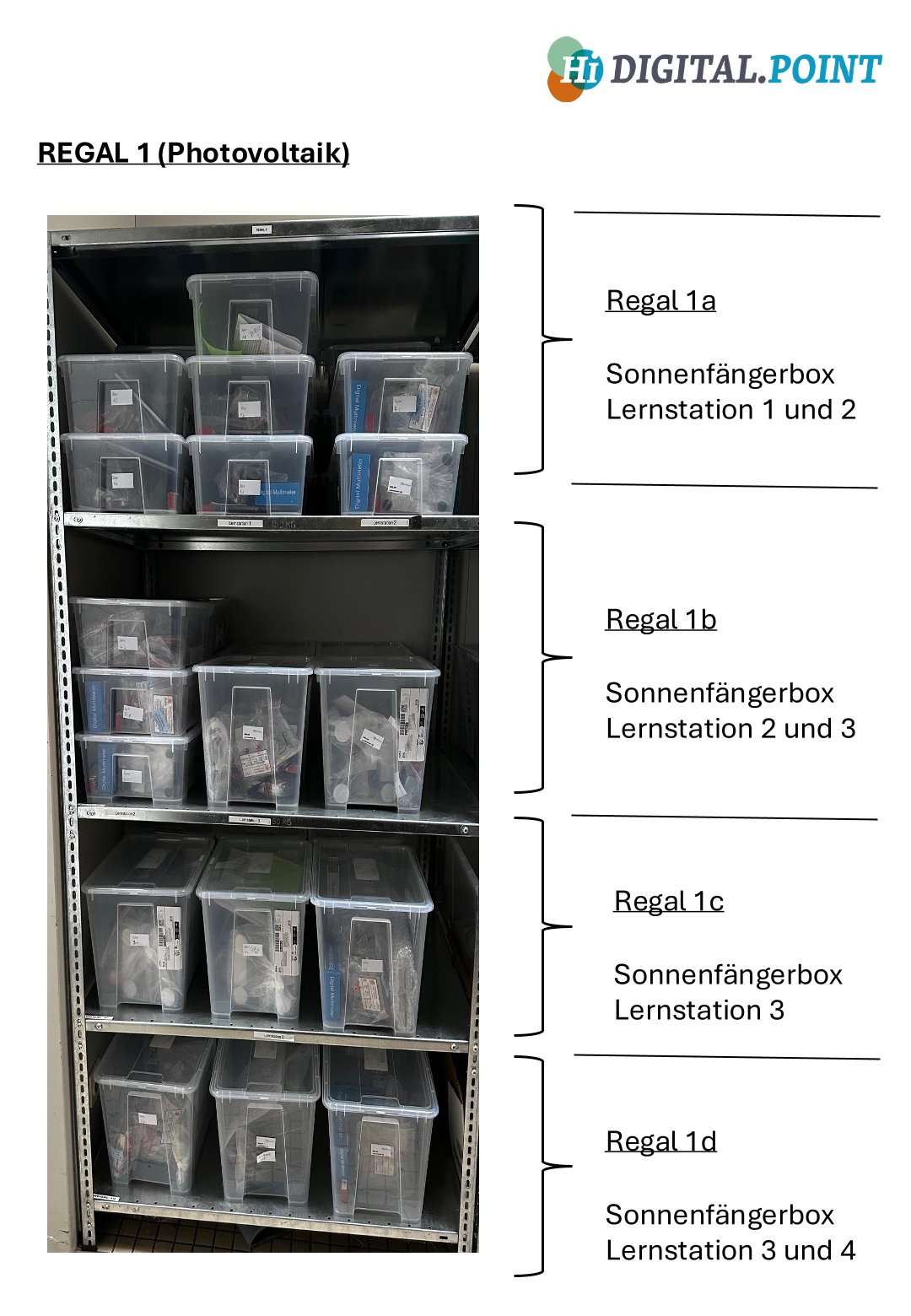 Hier finden sie Bilder der Regale in unserem Lager am Digital.Point. Bitte achten sie darauf, dass sie alle Materialien in die richtige Stelle zurück stellen und tragen sie sich mit dem QR-Code in die Ausleih-Liste ein.