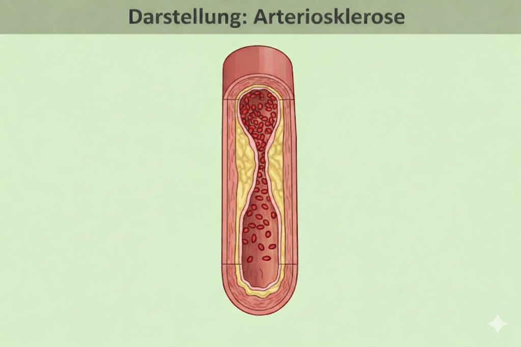 B) Blutgefäße verengen sich durch Ablagerungen ✅